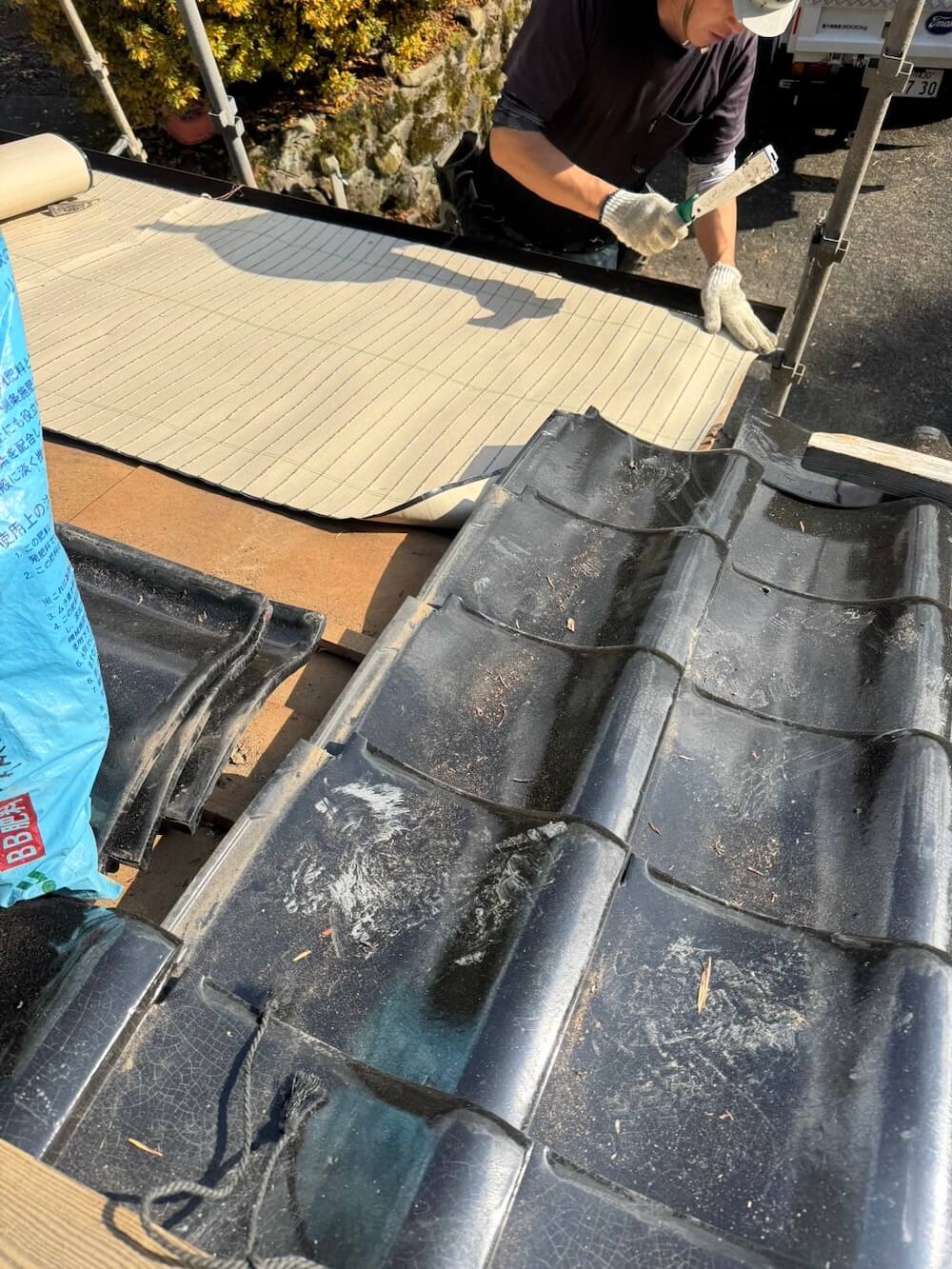 積み直し工事と途中まで同じで、既存の瓦を使用せず、新しい瓦を使用する施工。