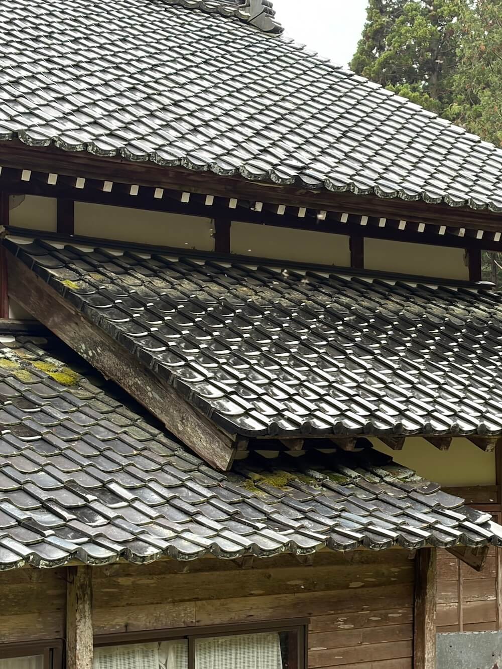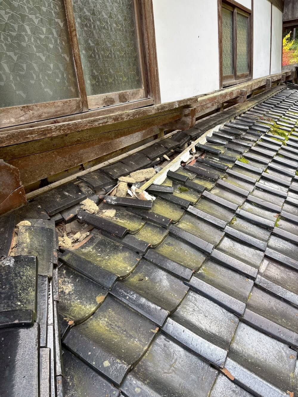 下屋根の瓦が落下しています、