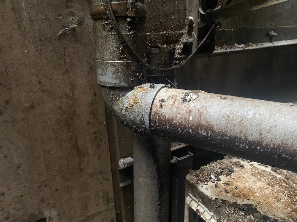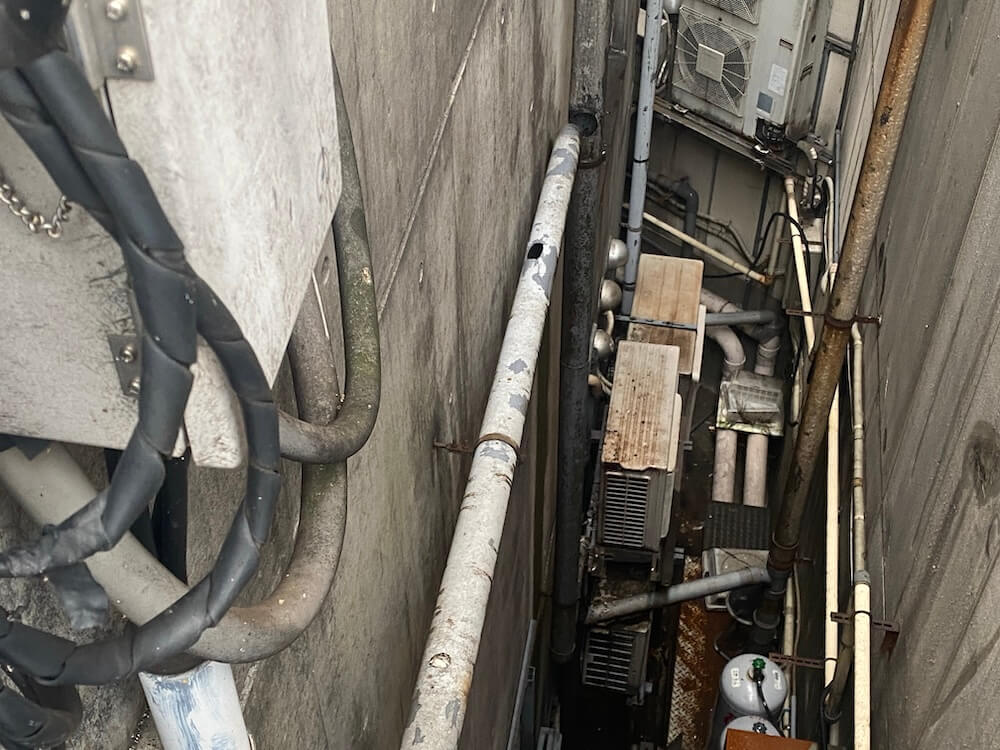 現地にお伺いした所、集水器の劣化、パイプの破損が見受けられました。
