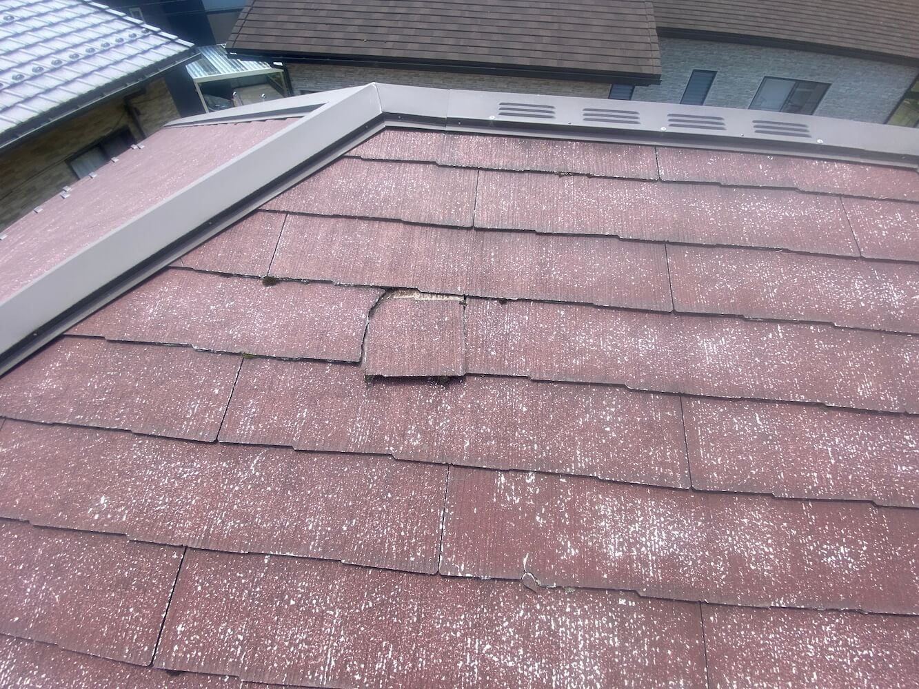屋根に上がって確認すると、コロニアルの屋根材が何箇所も割れていました。