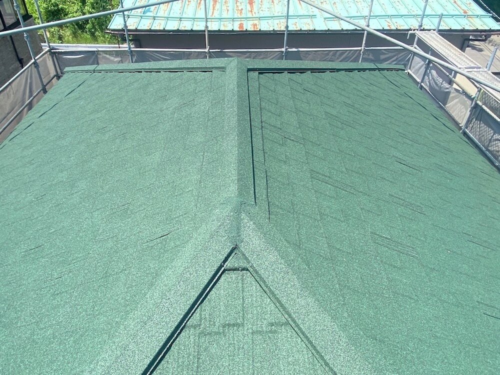 屋根重ね葺き工事:リクシル Tルーフ (モダンN グリーン)