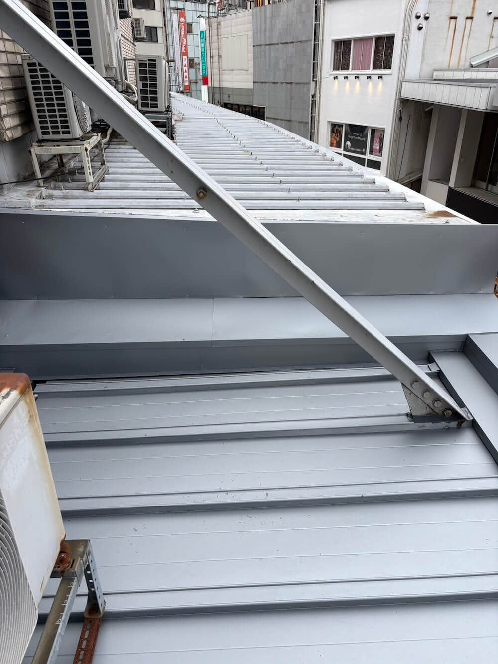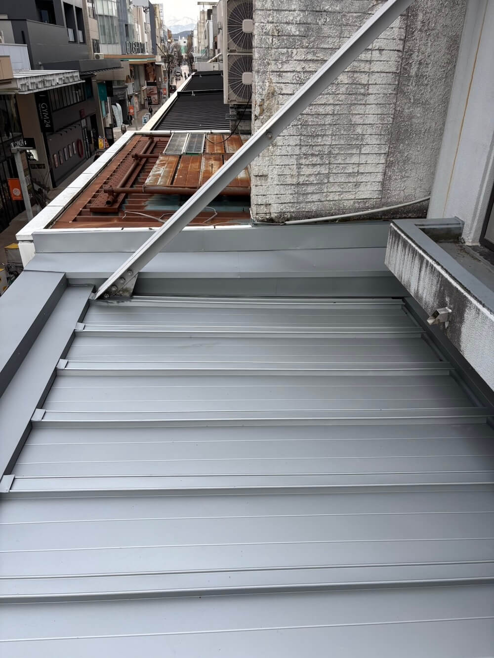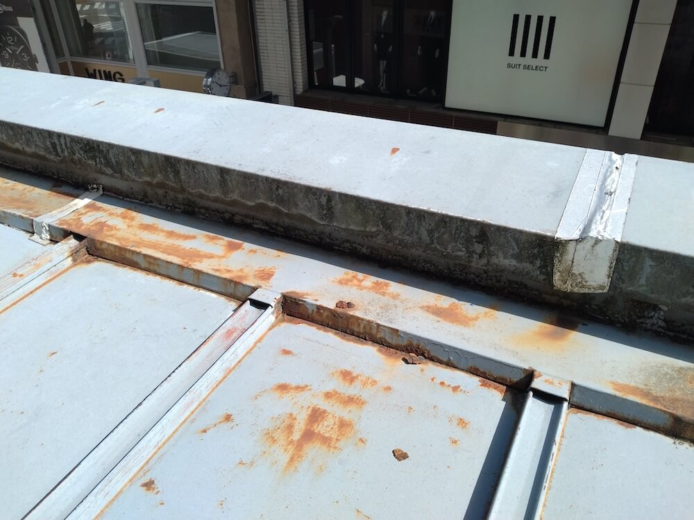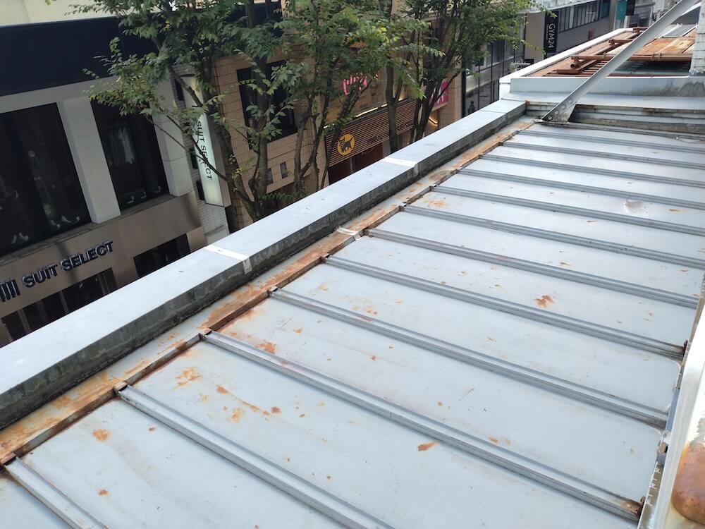 庇の上を調査してみると、瓦棒施工の屋根になっていました。